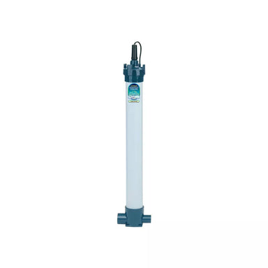 Pro-MAX™ Amalgam Bulb UV Sterilizer in 5" Housing, featuring a patent-pending, flow-through design with less restrictive angled inlet and outlet po...